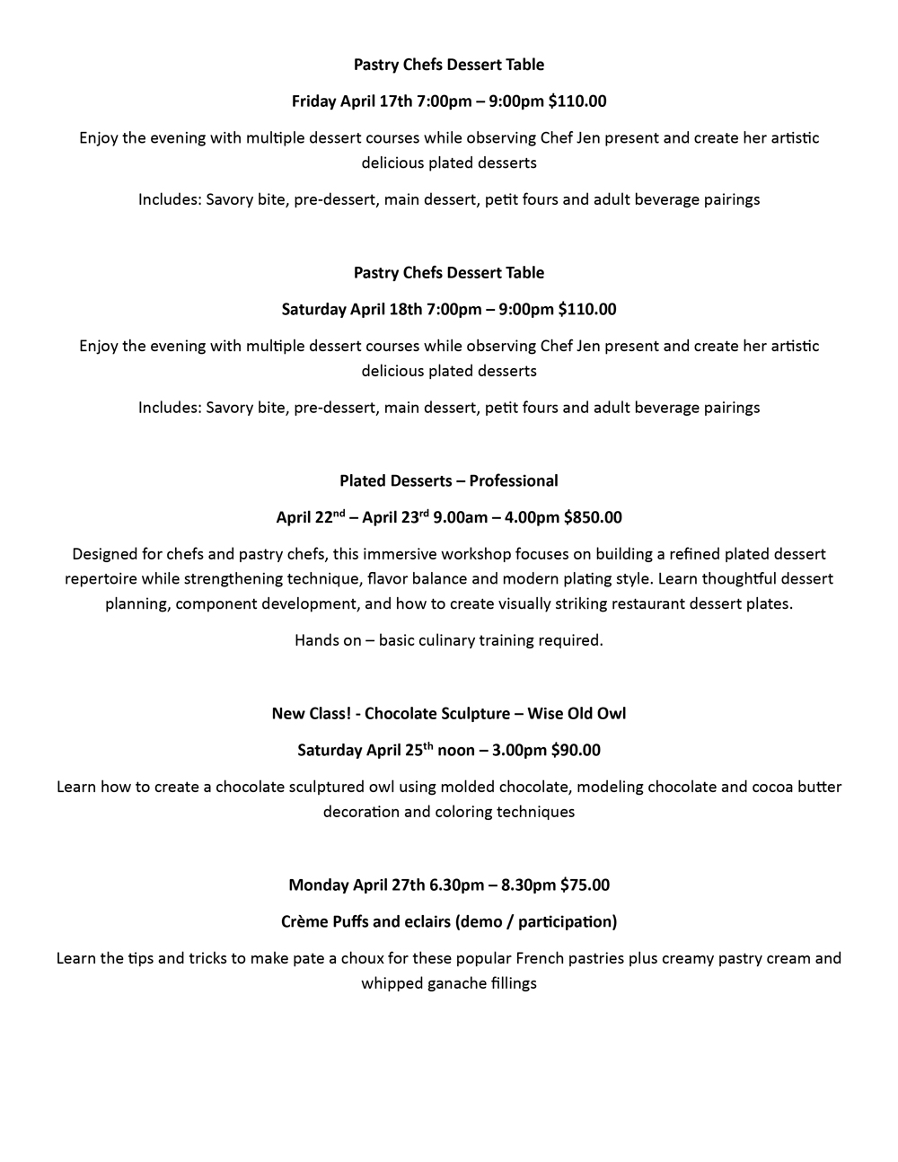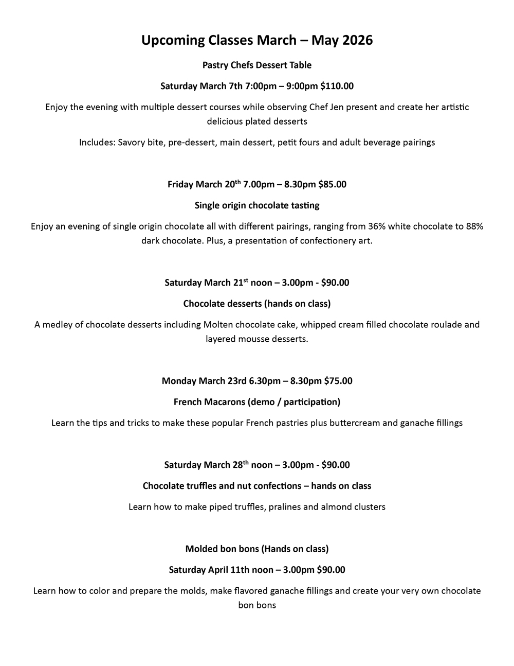 CLICK TO OPEN UPCOMING CLASSES | March – May 2026